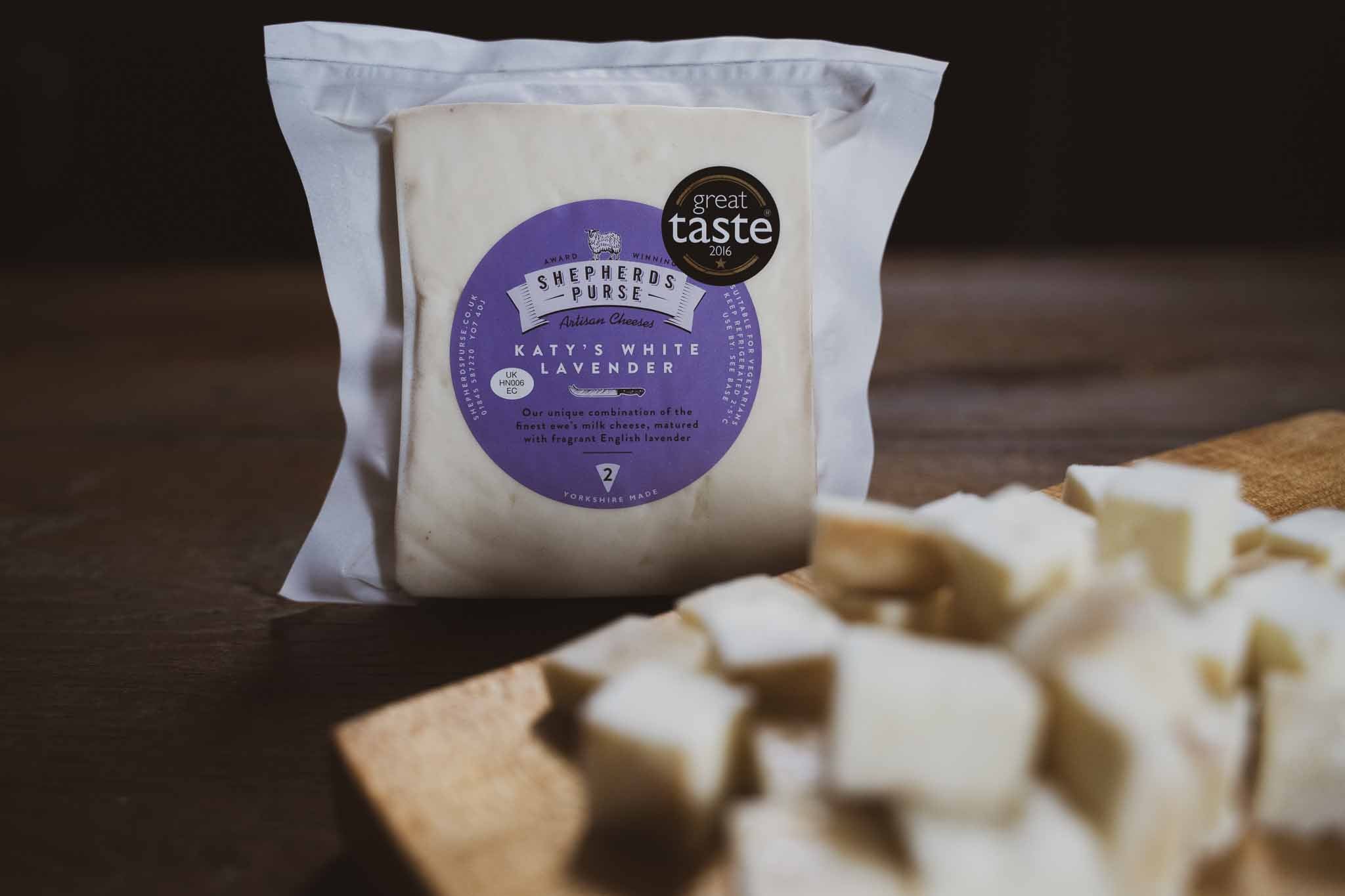 Made with ewes’ milk, we roll the cheese in dried lavender flowers. Left to mature over a number of weeks, the delicate lavender flavour infuses the creamy, crumbly cheese to stunning effect. It launched in 2003 and with its unique balance of flavour, Katy’s White Lavender is fantastic on any cheese board and delightful in salads too.